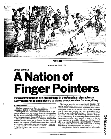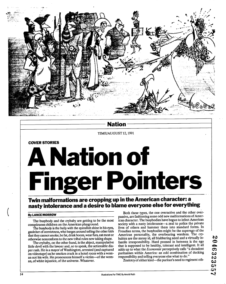 The current generation witnessed the deleterious effects of ignoring extreme situations in which the helpless incurred irreparable harm that would affect them for rest of their life. Good and honorable people realized that there was a call-to-arms to provide defense and comfort for the helpless in ways greater than those symbolic measures put forth by previous generations. They may go a little overboard at times, in the interest of protecting the helpless, but they feel that it is sometimes best to say something early, before a situation escalates. There is also some foggy notion in their head that if they do overreact in some situations, perhaps they might rectify the wrongs of the previous generation who decided to do little to nothing.