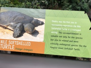 Turtle Porn. We’ve all read reports from conservation biologists detailing the trials and errors involved in saving a “critically endangered species like the Yangtze Giant Softshell Turtle”. Some of us might view such a chore as thankless and not very rewarding financially, but for these people it’s a passion. Most passionate people have, at least, one or two stories to tell about moments they’ve experienced in their field that define their reason for being, what the French would call their raison d’être. Others spend their careers chasing such moments. For a conservation biologist, zoologist or anyone else involved in the field, the idea that they might one day play some role in saving a species would be that raison d’être. Reading the note in the accompanying photo, even the most casual observer can’t help but feel that passion coming off the plaque.