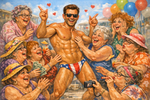 “Have you ever been fawned over?” I asked her. “Most women have. Most men haven’t. I’m sure gorgeous men get fawned over all the time, but most men don’t know they’re attractive, until it’s too late in life. They look back at pictures of themselves and realize that they were a lot better looking than they thought. Women aren’t as generous with their praise. They seek to humble men. So, when a man gets fawned over by women, it doesn’t really matter what they look like.