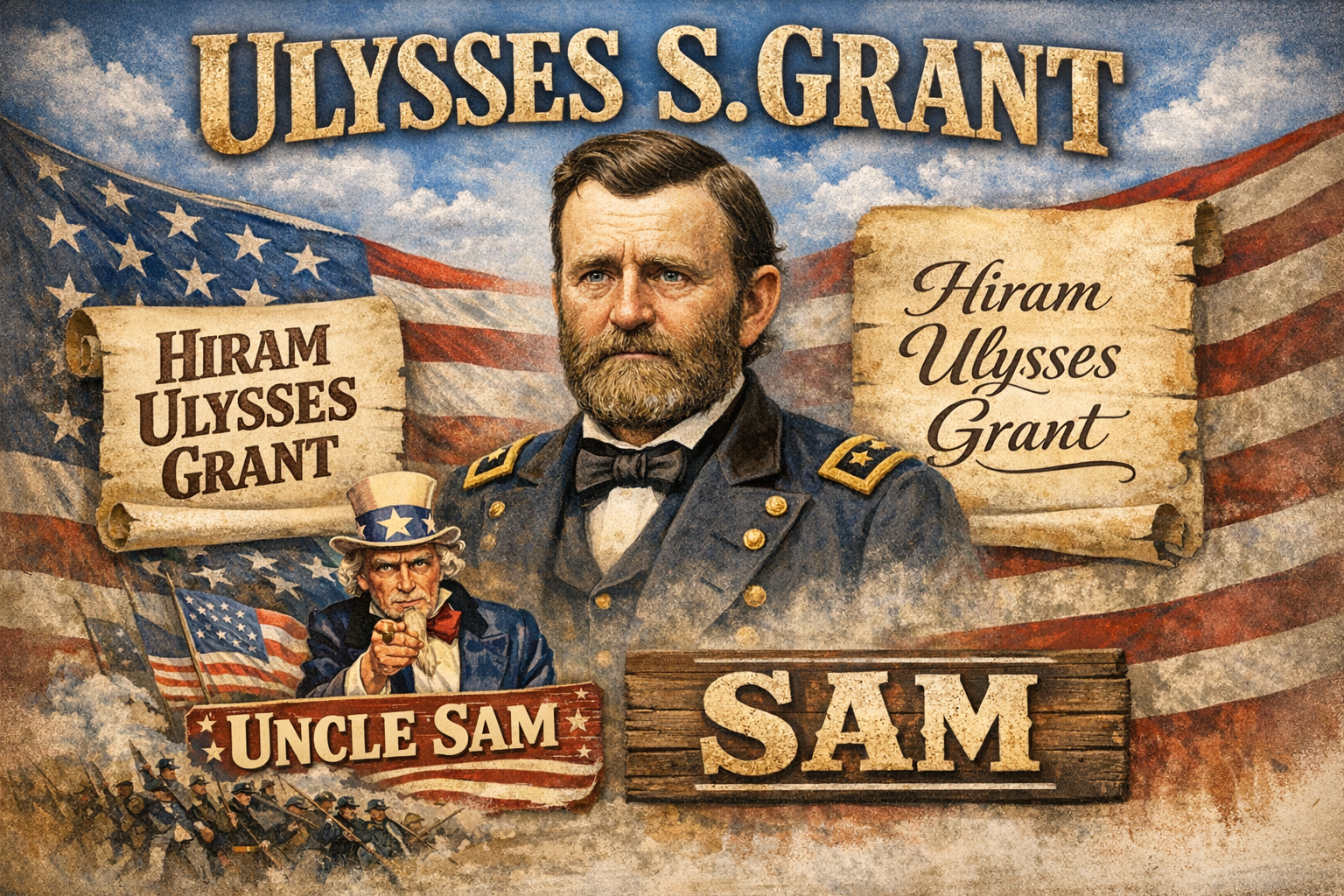 The confusion began after “Grant was nominated to West Point in 1839 by Ohio Congressman Thomas Hamer, who wrote Grant’s name in the application as “Ulysses S. Grant.”” Everyone called him Ulysses, so Congressman Hamer just assumed that was Hiram’s first name. Middle names weren’t as common in this era as they are today, as evidenced by the fact that Abraham Lincoln did not have one, so we can only assume that Hamer assumed Ulysses Grant didn’t have a middle name. The problem for Congressman Hamer was that the West Point application required a middle initial, and due to the fact that Hamer couldn’t just text Hiram to sort matters out, or call him, he decided to just fill the blank in that application to get it done. Congressman Hamer found out that Hiram Grant’s mother’s maiden name was Simpson, so he just added the famous S. on the application. (Another interesting piece of trivia regarding the S as a middle name is Harry S Truman. Harry’s “S” was a standalone. His parents couldn’t decide whether to name him after Solomon Young, Harry’s maternal grandfather, or Anderson Shipp Truman, his paternal grandfather, so they compromised and just gave him an ‘S’ as a middle name with no period, because it wasn’t abbreviated.) “Grant made several efforts to correct the mistake [Ohio Congressman Thomas Hamer made], but the name stuck.” As with every military institution, Grant’s fellow cadets at Westpoint developed a nickname, because of his “unintentionally patriotic initials U.S.” They called him Uncle Sam, or just Sam. That man had several names in life.