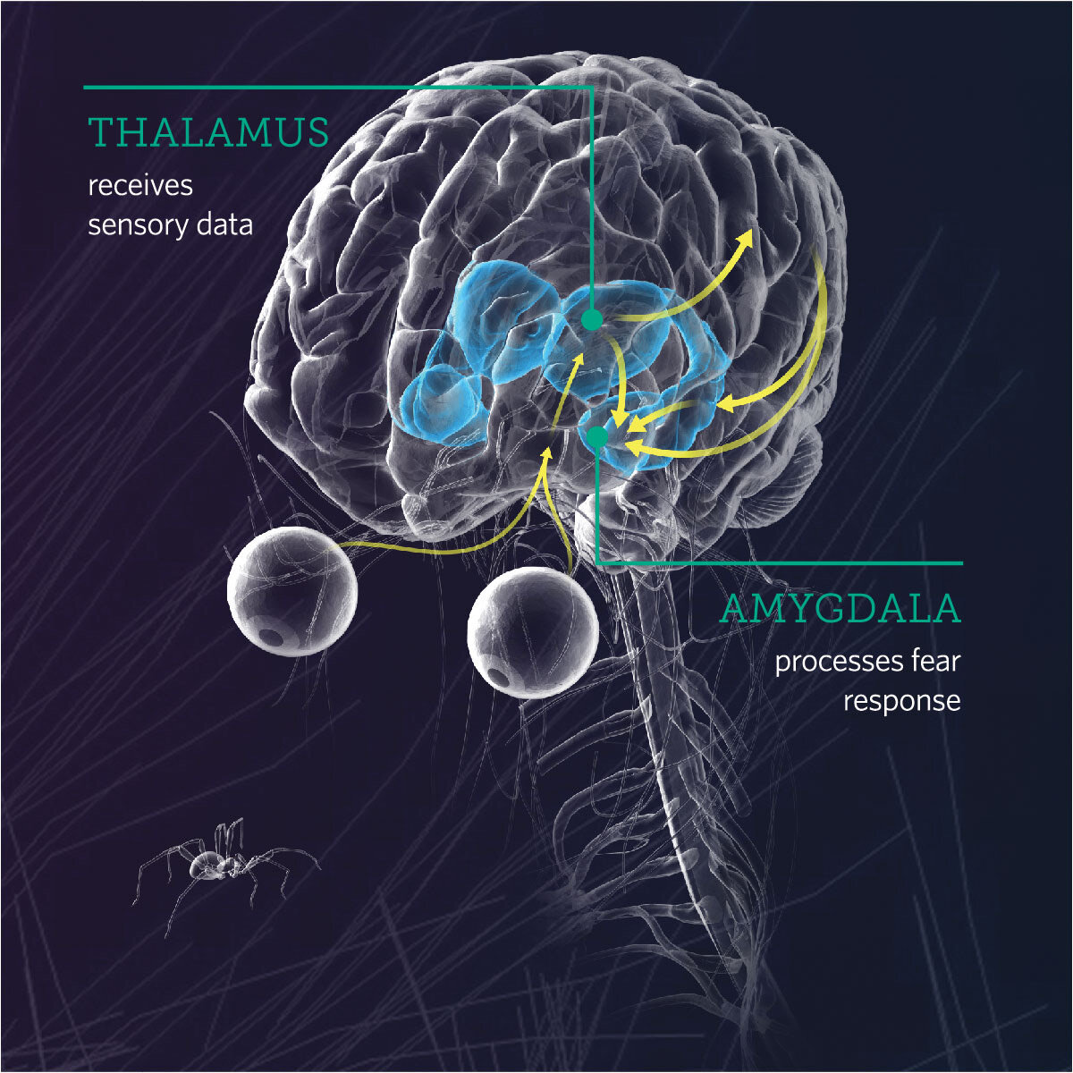 One of the primary directives of the brain is to protect us. It protects us from heights, guns, and the prospect of encountering large, man-eating animals through chemical compounds that induce fear. When we fear, we learn to employ various defensive measures, including creating distance from the temptation, to prevent what the brain suspects could cause bodily harm. Over the years, we learn what to eat and drink, and what we do and think to prevent bodily harm. The brain instinctively knows, and learns, what can cause death. What isn’t so obvious are the irrational fears we develop for the dark, ladybugs, and inanimate objects.
