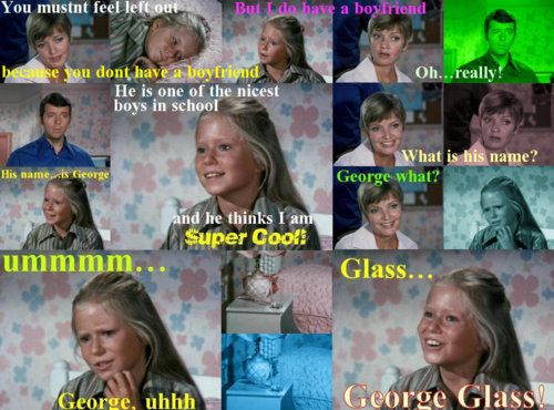 “We’ve never talked about this?” Arnold asked me with some fatigue. “You obviously didn’t grow up watching The Brady Bunch, did you?” I said I had, and the name George Glass immediately came to mind, but I feigned ignorance. “There was an episode where Jan Brady made up an imaginary boyfriend. When she was pressed for his name, she said, “George,” and then she looked around and saw a glass of water. “George Glass,” she said.”