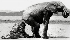 A zoo keeper grows concerned with how constipated his beloved elephant is. He and his fellow zoo keepers, management, and the zoo community try everything to provide her some relief. In total desperation, the man learns of an effective, all-natural cure of herbs and oils. He places it on a wire brush and inserts it, and it works. It works so well that the elephant unloads on the zoo keeper. The zoo keeper is hit by the violent discharge so perfectly that it knocks him down, and he hits his head so hard that he unfortunately experiences a temporary and fatal moment of unconsciousness, as two hundred pounds of dung suffocates him.